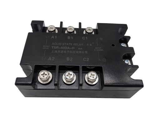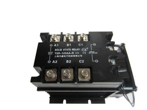 三相固態繼電器,一種無觸點通斷電子開關,其中兩個端子為輸入控制端,另外三進三出為受控端,中間采用光電隔離,作為輸入輸出之間采用光電耦合。在輸入端加上直流或脈沖信號,輸出端就能從關斷狀態轉變成導通狀態(無信號時呈阻斷狀態),從而控制較大負載。整個器件無可動部件及觸點,可實現相當于常用的機械式電磁繼電器一樣的功能。