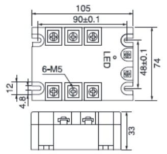 四. 三相固態繼電器外形尺寸和安裝接線圖:(單位:mm)